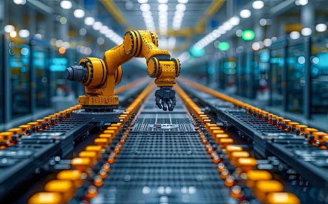 Factory smart industry robot arms digital production